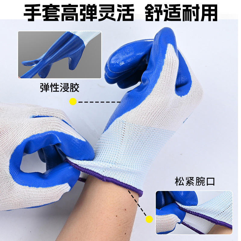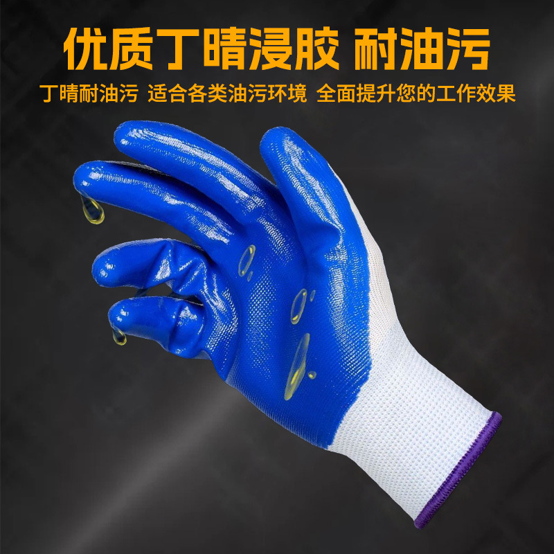 劳保手套丁晴橡胶浸胶加厚耐磨防滑防油工地车间干活防护多功能