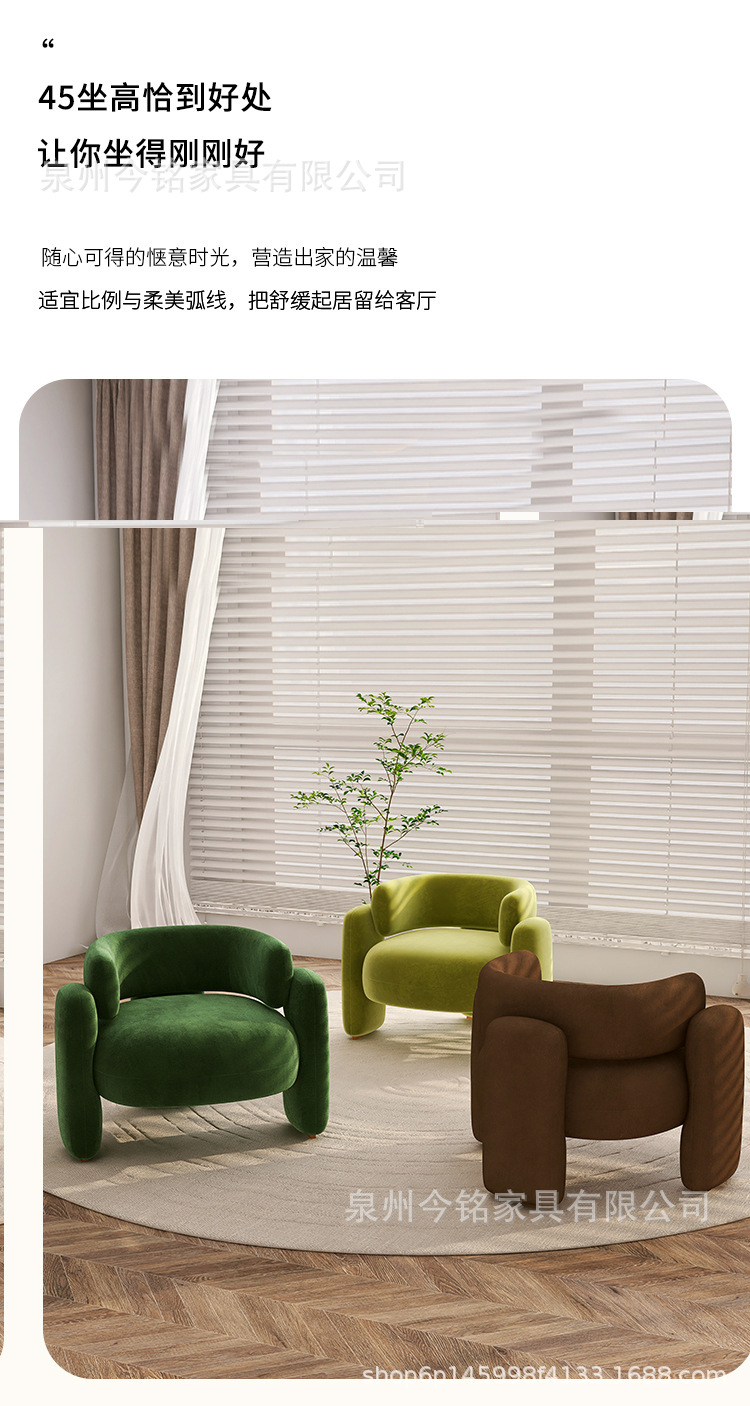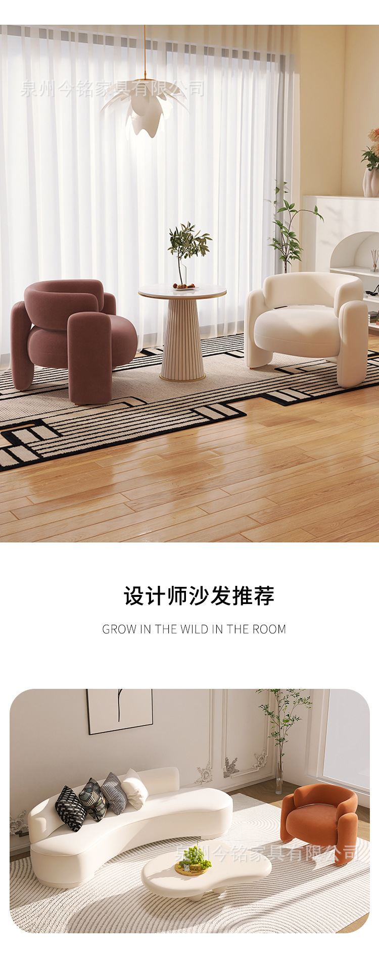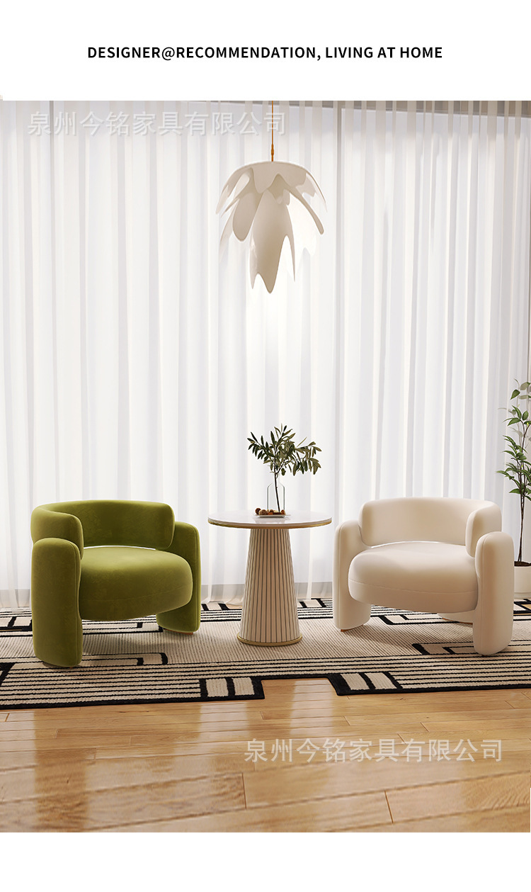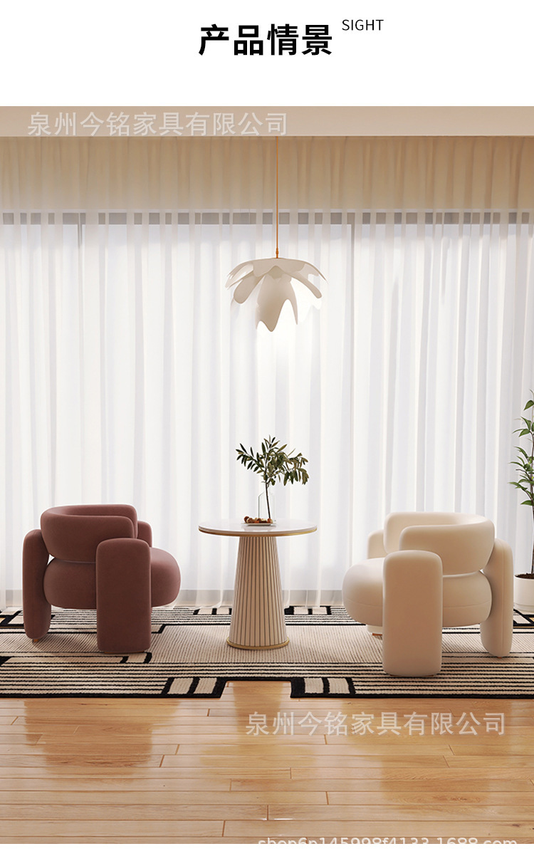 北欧单人沙发椅美容院网红接待桌椅组合服装店小户型休闲布艺沙发