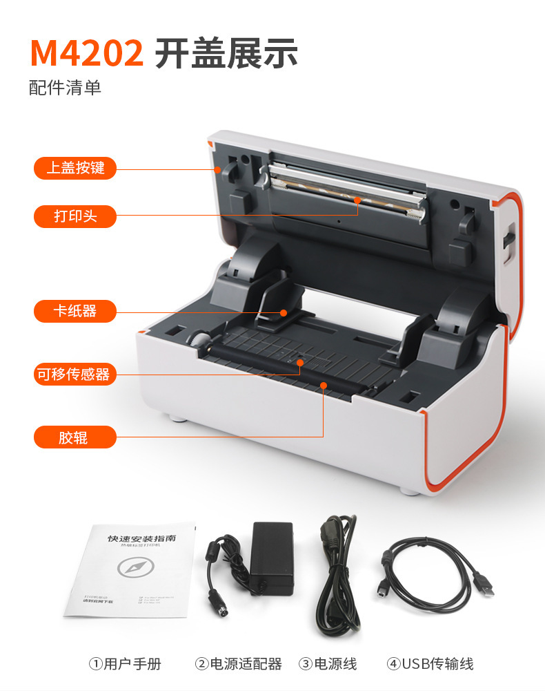 跨境热销M4202无纸仓蓝牙热敏不干胶电子面单E邮宝快递标签条码打