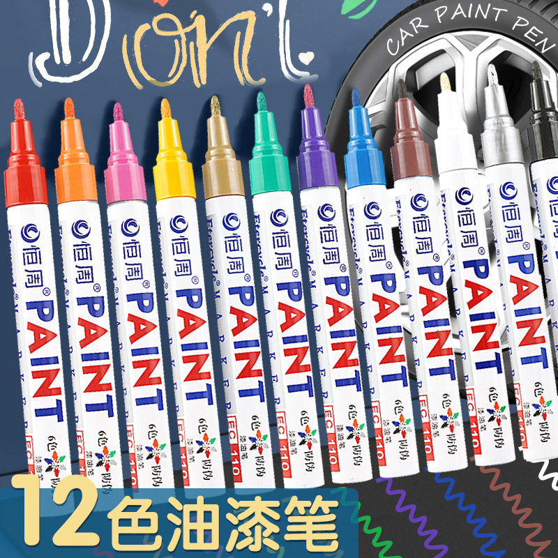 白色金属油漆笔防水速干油性记号笔钢铁工业轮胎补漆不掉 色马克