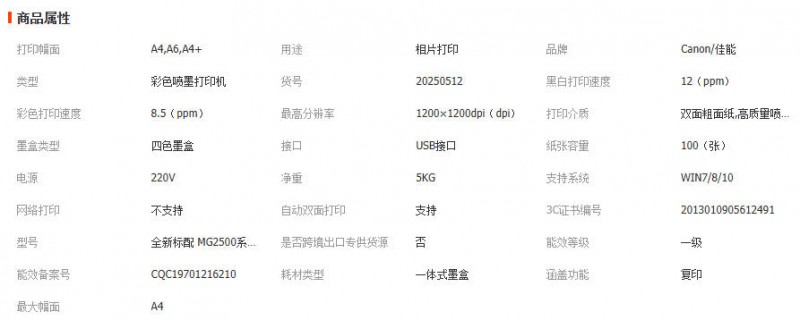 家用小型佳能MG2580S打印机 复印扫描一体机彩色喷墨手机学生A4机