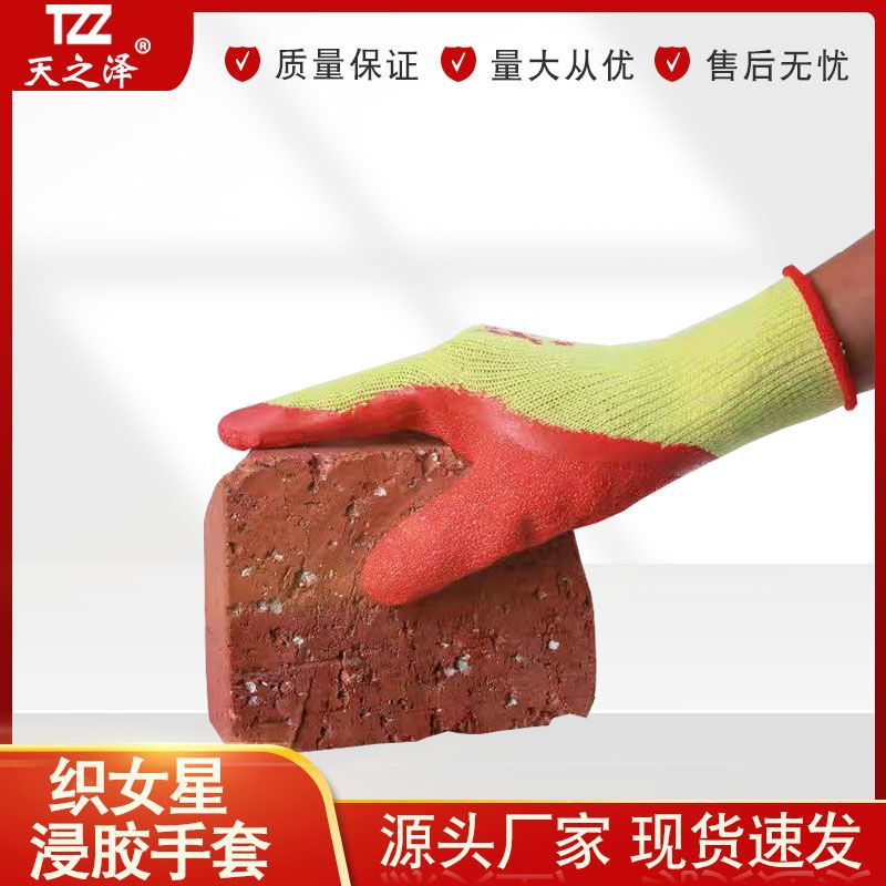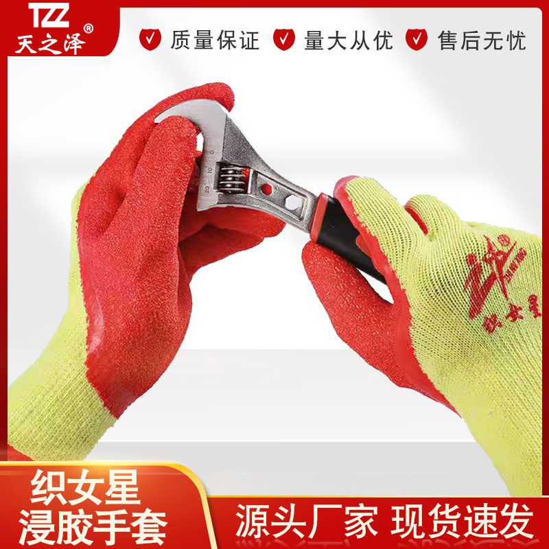 牛郎星织女星劳保手套耐磨防滑胶皮棉线浸胶皱纹工作男女户外正品