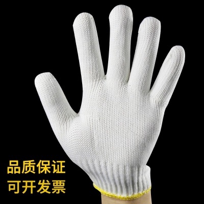 棉纱手套劳保耐磨工作棉线棉纱尼龙手套防护作业加厚手套工地干活