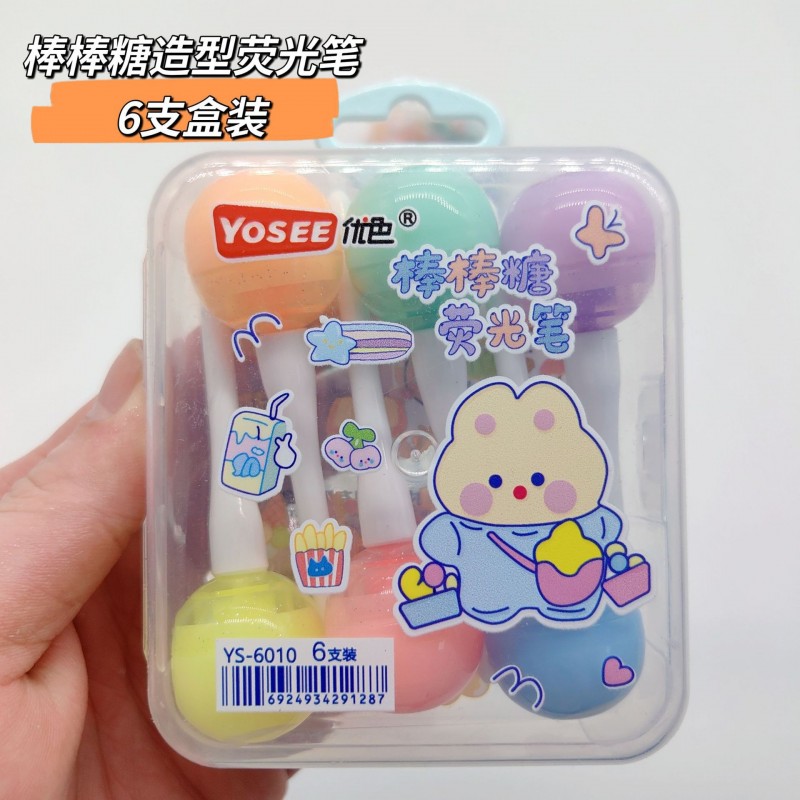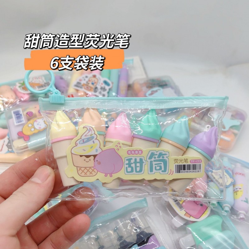 新款卡通造型6支装荧光笔 糖果造型水彩记号笔学生奖品礼品标记笔