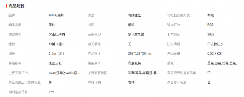 AULA狼蛛F3061迷你机械手感小键盘61键有线RGB台式笔记本平板便携