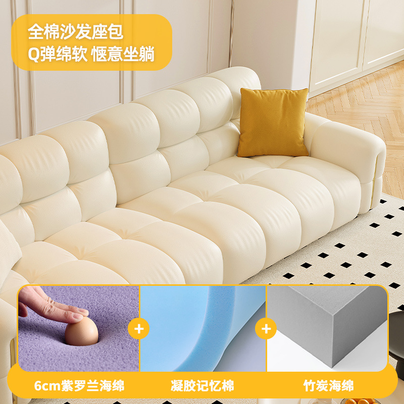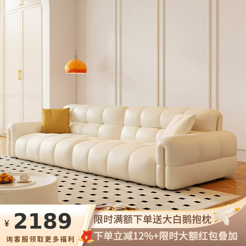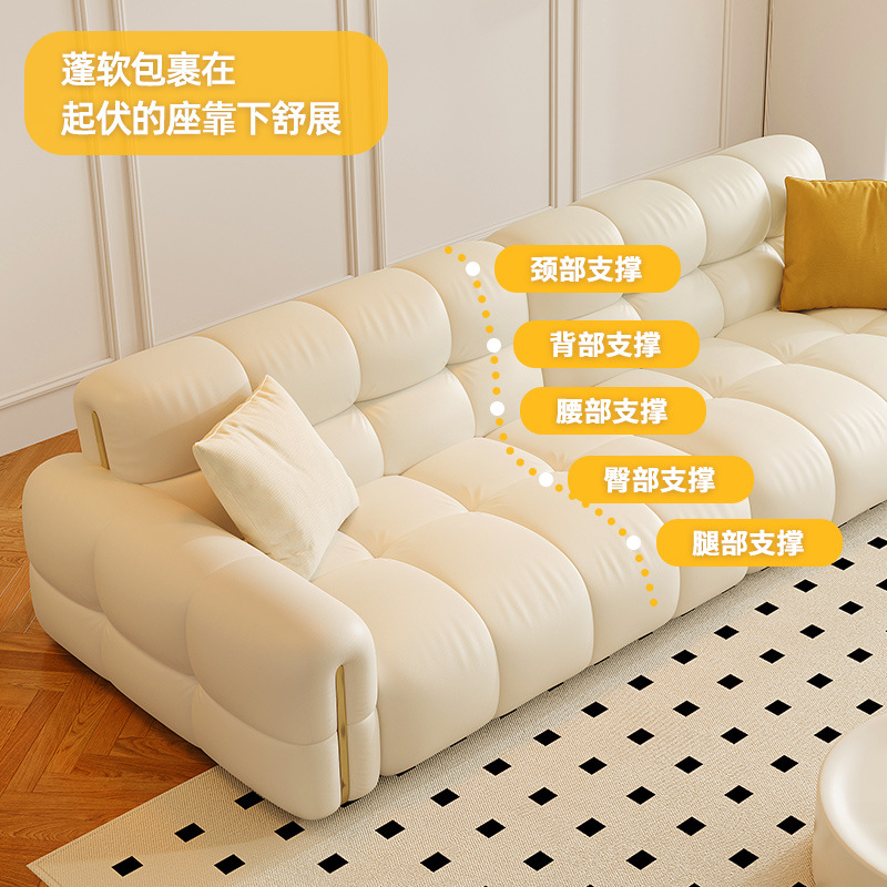 吉与 法式轻奢巧克力钢琴键直排泡芙沙发客厅奶油小户型真皮沙发