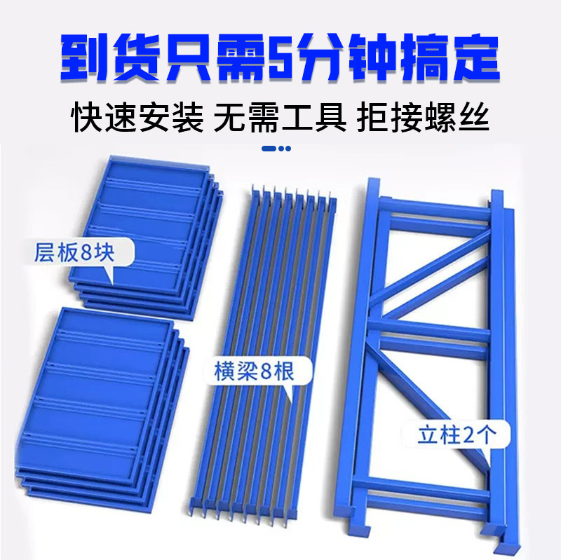 蓝色仓储货架200kg轻型中性仓库置物架五金库房储物收纳加厚架子