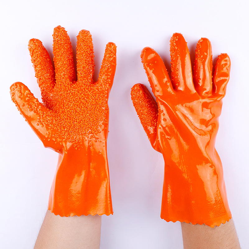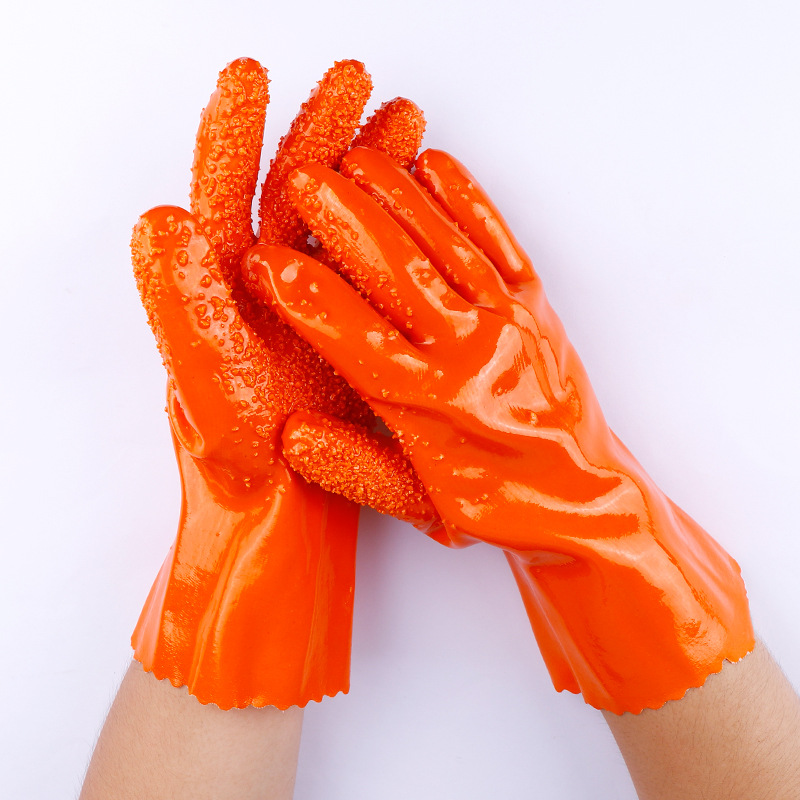 颗粒止滑耐油耐酸碱手套全浸塑加厚防水防滑渔业工作耐磨防油手套