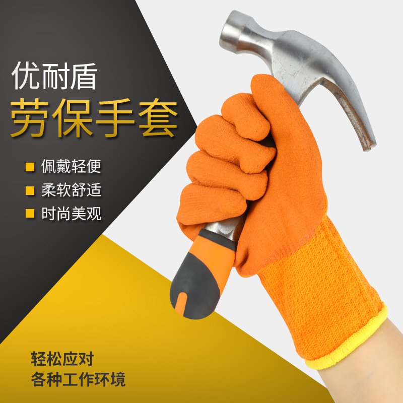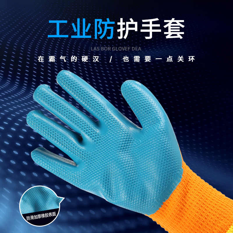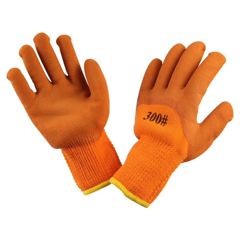 毛圈发泡手套加厚冬季保暖皱纹防滑耐磨工地防护劳保挂胶手套300#
