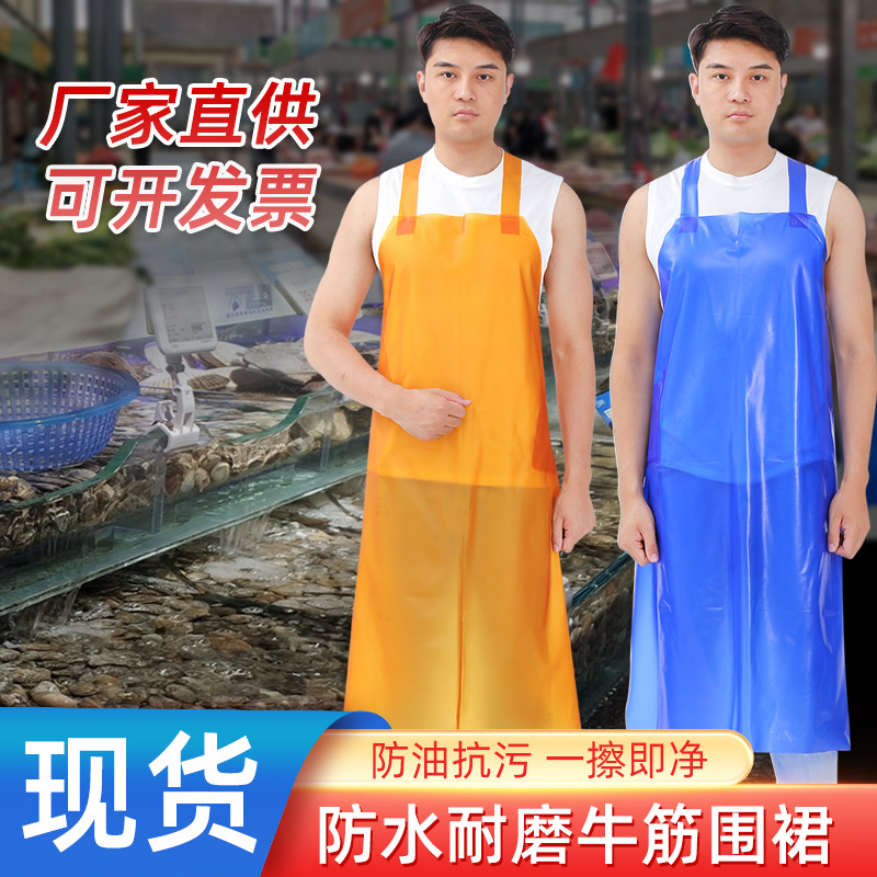 防水防油耐磨酸碱牛筋围裙pvc水产石材食品厂劳保背带加大厚围腰
