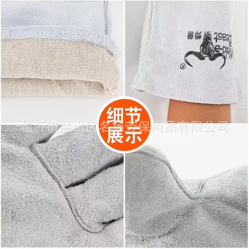 防火线缝制AB长款焊兽双层加厚挂里电焊手套全皮翻毛牛皮耐磨隔热