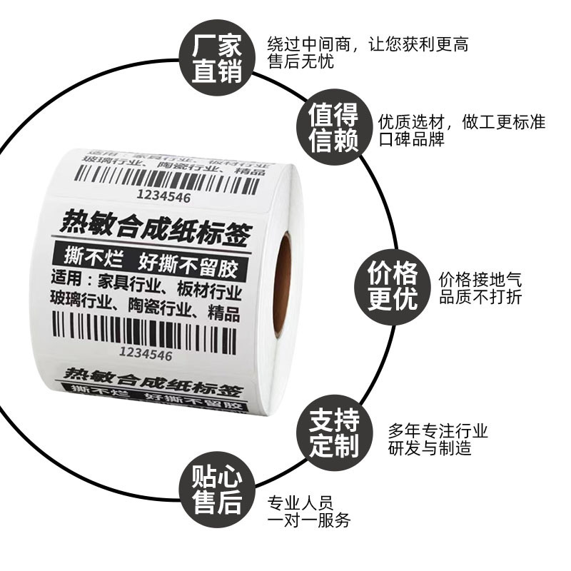 五防热敏不干胶标签纸 撕不烂防水防油无痕背胶耐低温热敏合成纸