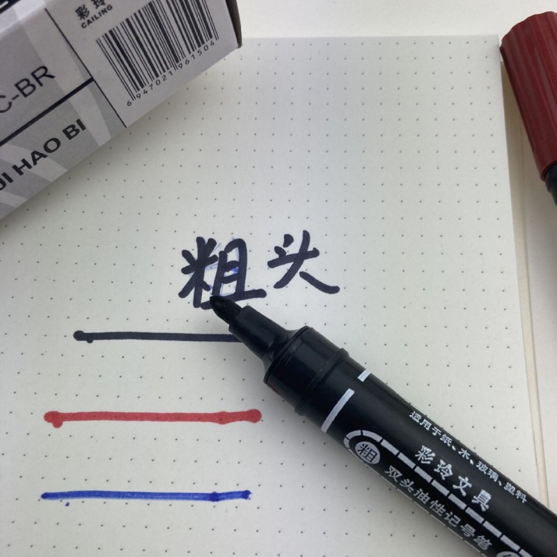 彩玲150油性双头记号笔黑色大容量马克笔涂鸦不掉色速干