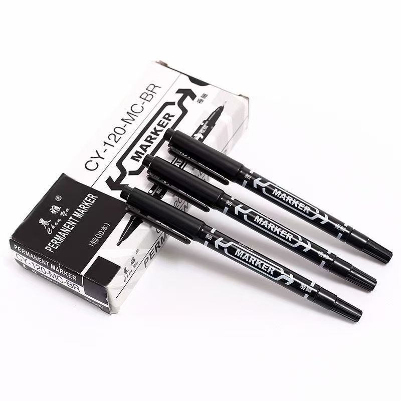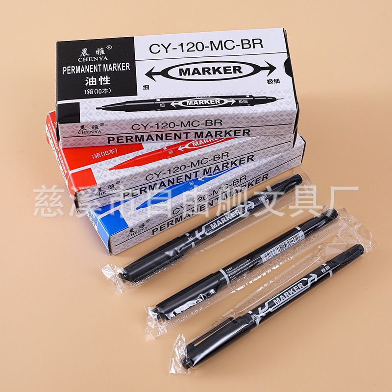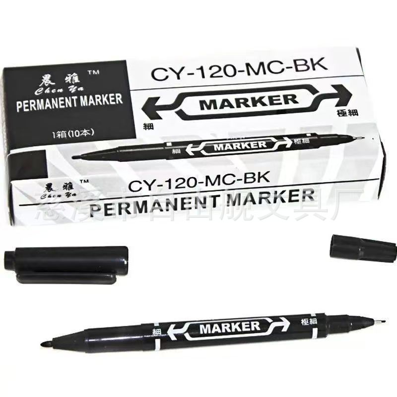 晨雅120双头水性记号笔黑色签字细笔勾线笔唛厂家马克笔不掉色