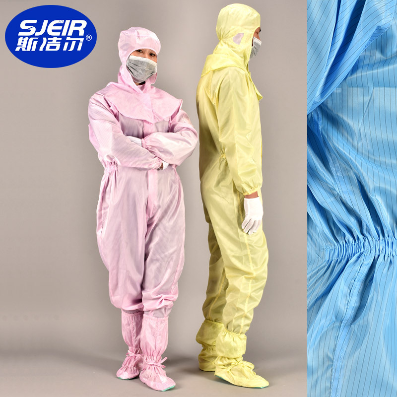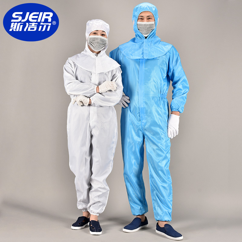 厂家直销防静电连体防尘洁净服蓝色条纹无尘服灰色网格防静电连体