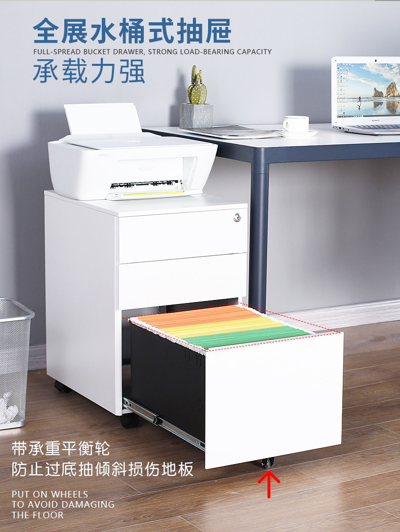 办公室文件柜铁皮小活动柜抽屉柜桌下储物柜矮柜子带锁移动收纳柜