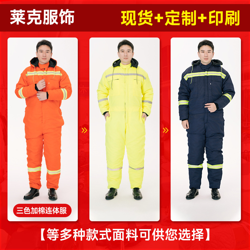冬季棉衣大棉连体服防寒保暖加厚反光条连体带帽劳保冷库棉工作服
