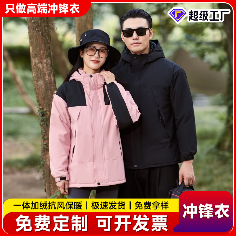 新款冬季加绒加厚工作服男女防风防水冲锋衣定 制logo劳保户外套