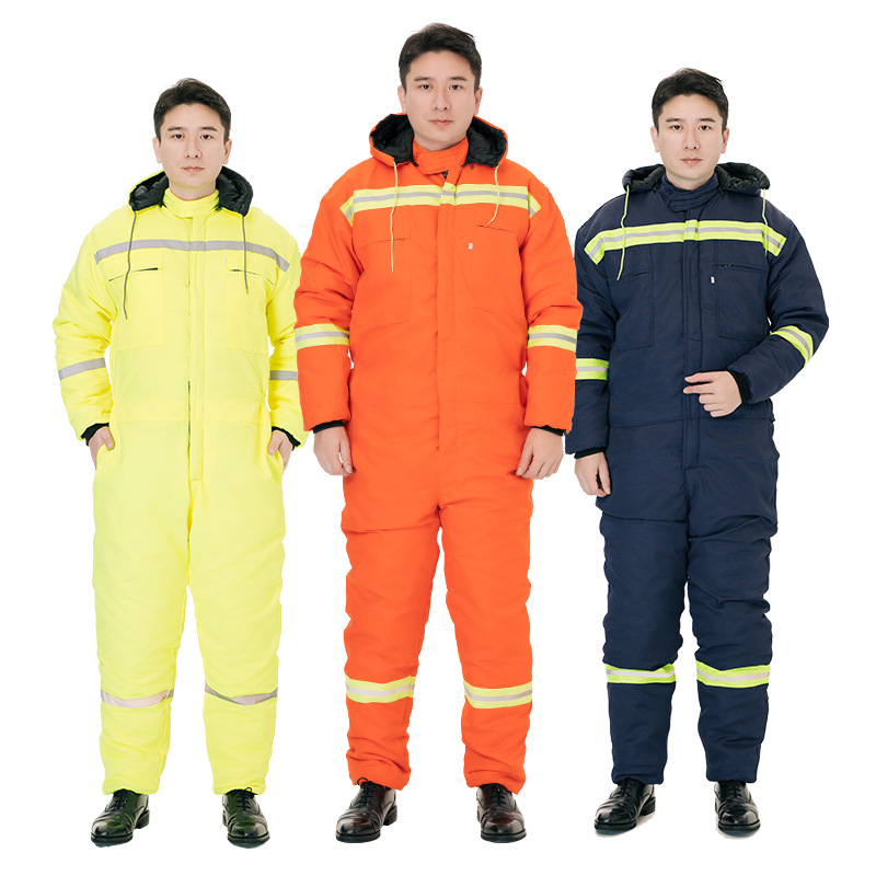 冬季棉衣大棉连体服防寒保暖加厚反光条连体带帽劳保冷库棉工作服