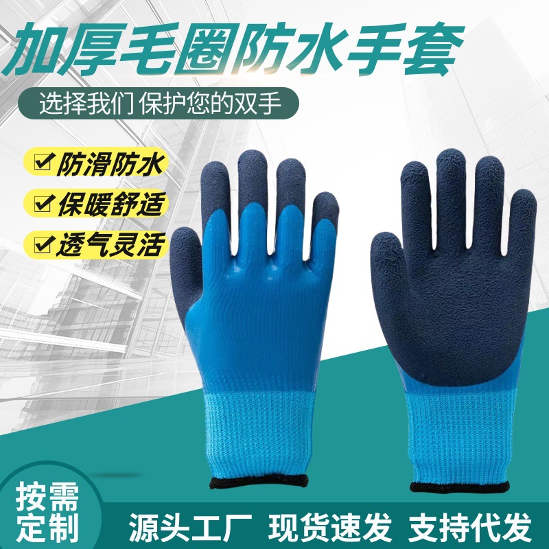 劳保手套冬季加厚毛圈防水防寒保暖户外工作手套舒适透气防滑耐磨