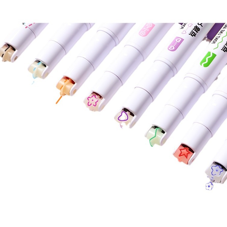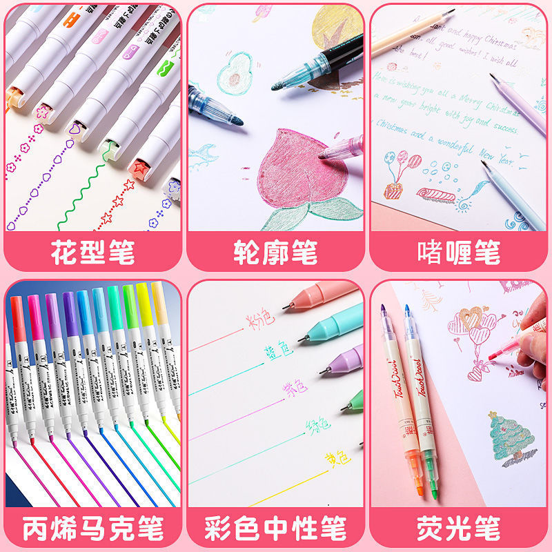 双头花型轮廓学生荧光笔手账本波浪线划重点曲线彩色记号笔批发部