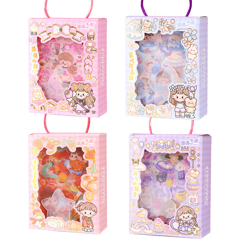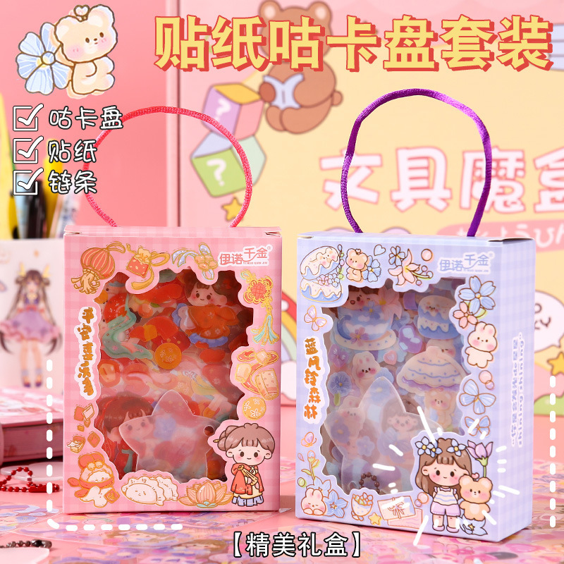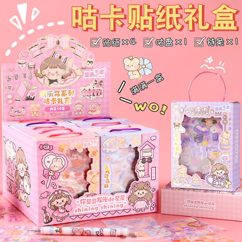咕卡贴纸礼盒卡通少女心儿童手帐创意装饰素材图贴画和纸胶带手工