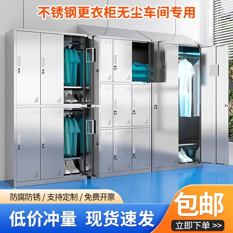 不锈钢斜顶更衣柜食品厂净化车间员工紫外线消毒浴室换衣储物柜子