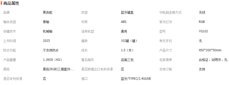 黑吉蛇YG102机械键盘套件蓝牙无线2.4G有线三模RGB热插拔游戏电竞