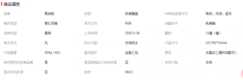 黑吉蛇 DK21机械套件RGB有/无线蓝牙三模透明数字小键盘pad热插拔