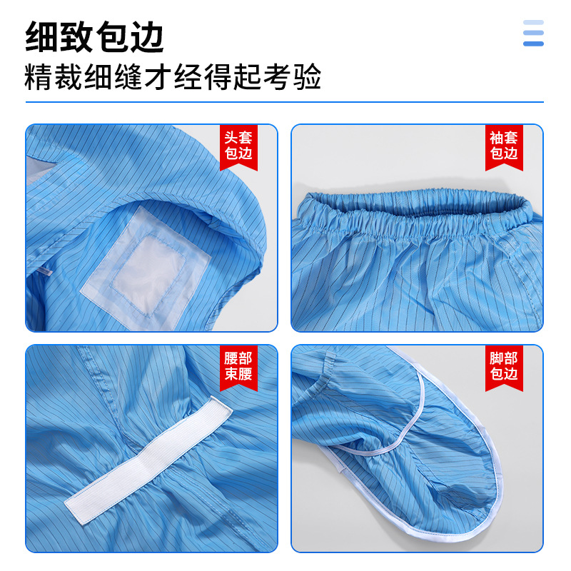 防静电四连体连帽连体服洁净无尘防护服防尘静电衣连体全身沙疗服
