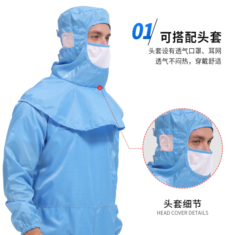 立领网格连体衣GMP洁净车间工作服5mm网格无尘服无尘车间无尘衣服