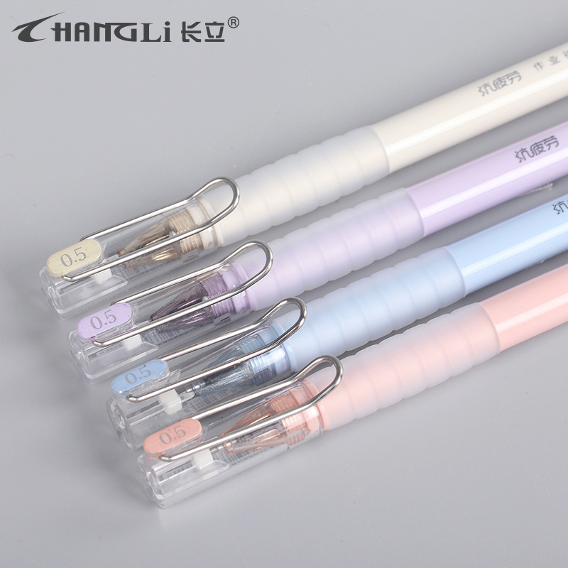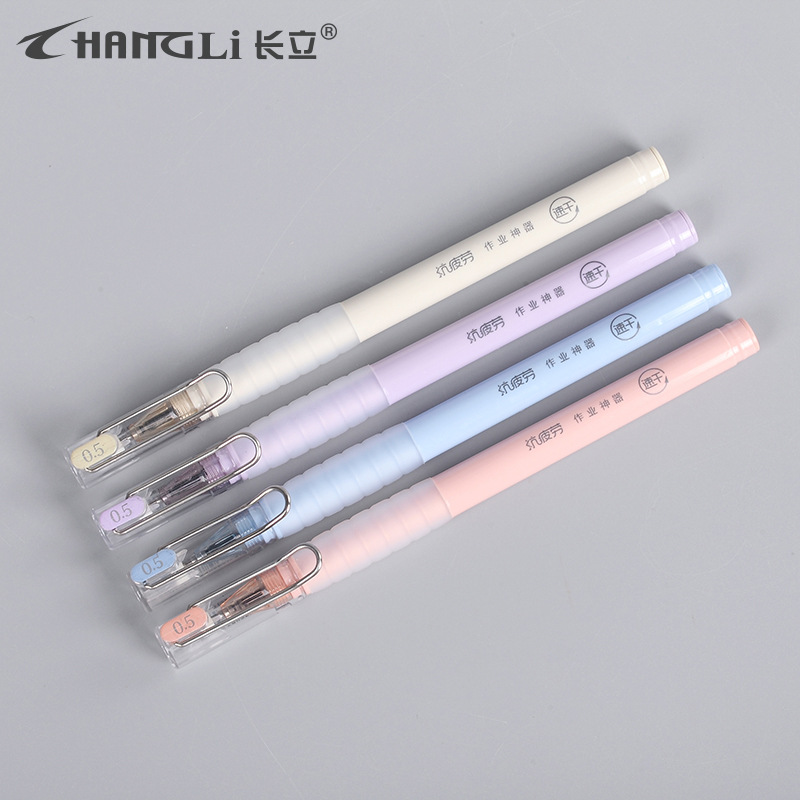 【拔盖刷题中性笔】签字笔头黑笔软胶莫兰迪圆珠笔式批发代