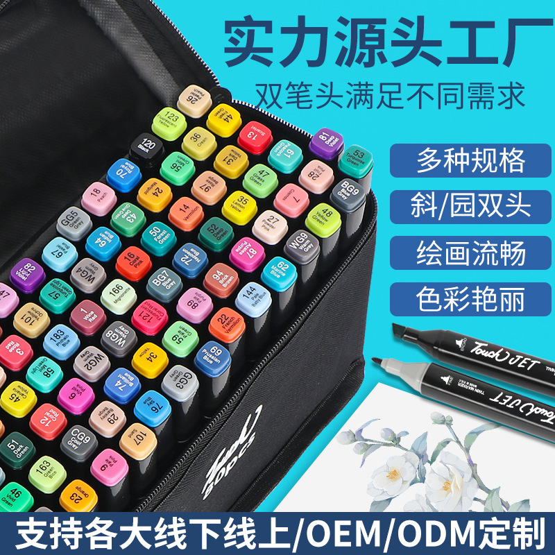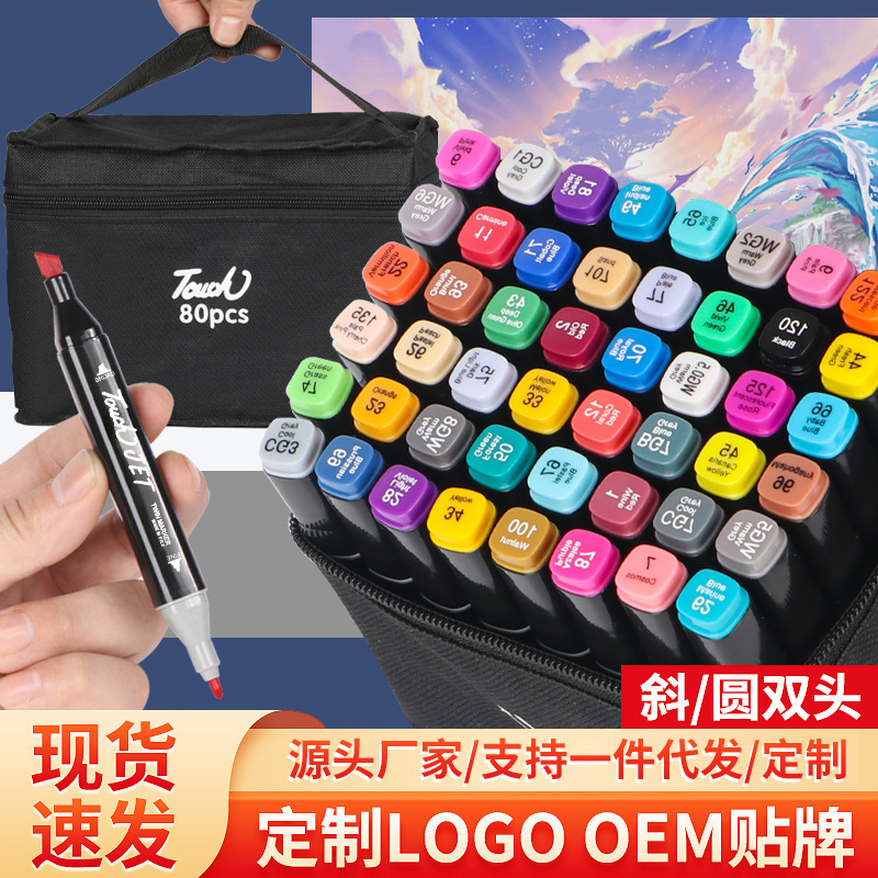 48色马克笔套装Touch彩色儿童80/24色油性双头水彩笔批发学童画笔