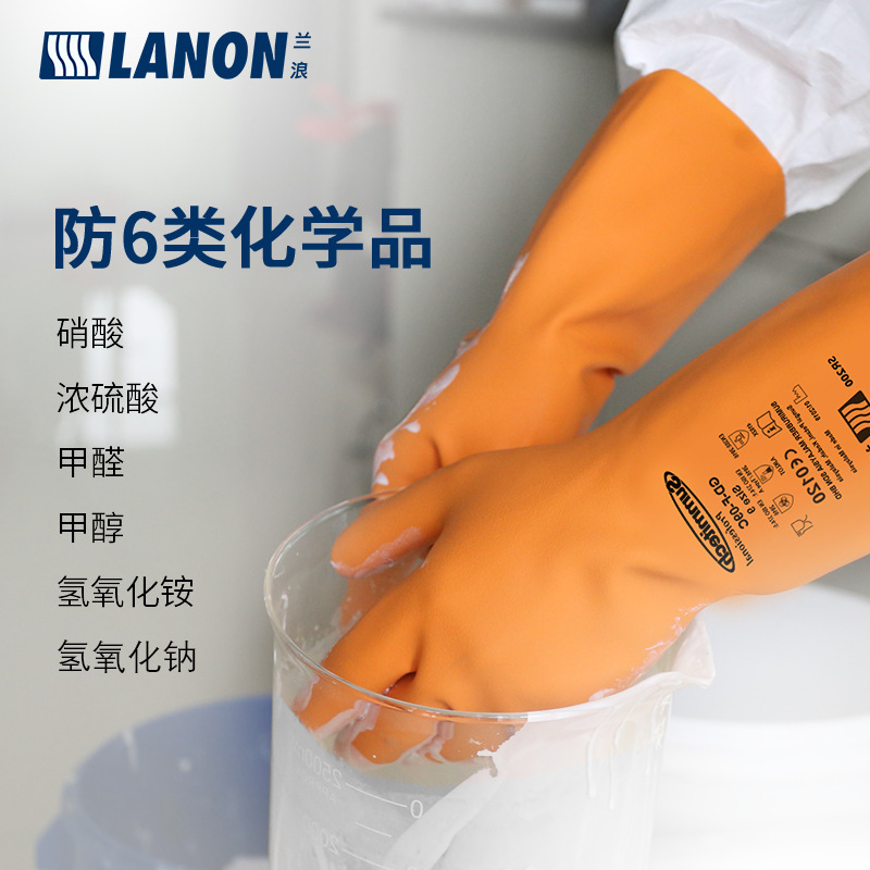 兰浪SR200天然橡胶防化手套耐酸碱耐腐蚀化工机械劳保手套