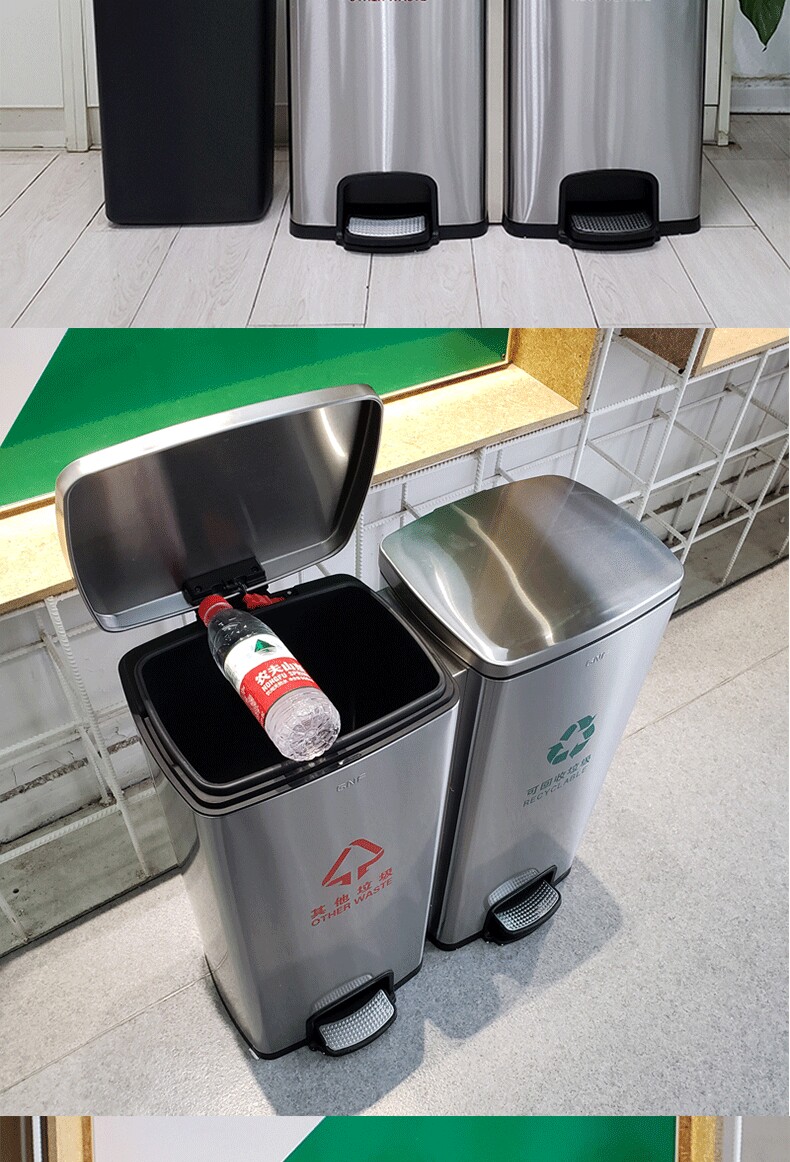 双桶大号办公室果皮箱加厚不锈钢脚踩筒北欧批发酒店四分类垃圾桶