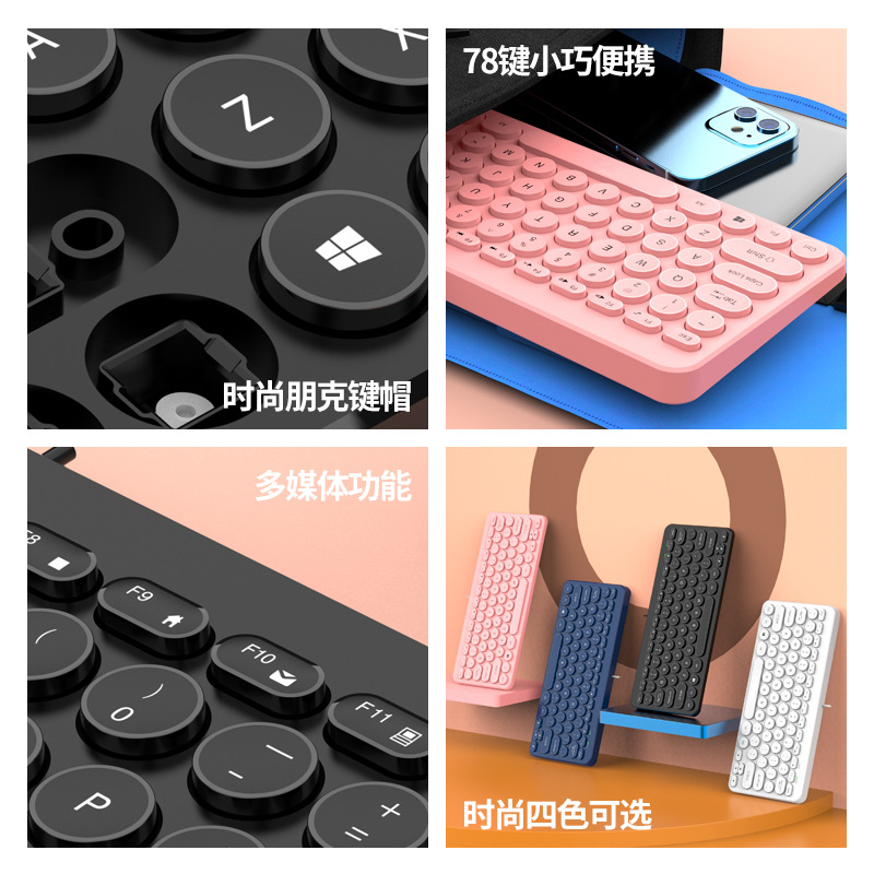 笔记本外接K380键盘复古圆形键帽静音按键笔记本台式通用中性键盘