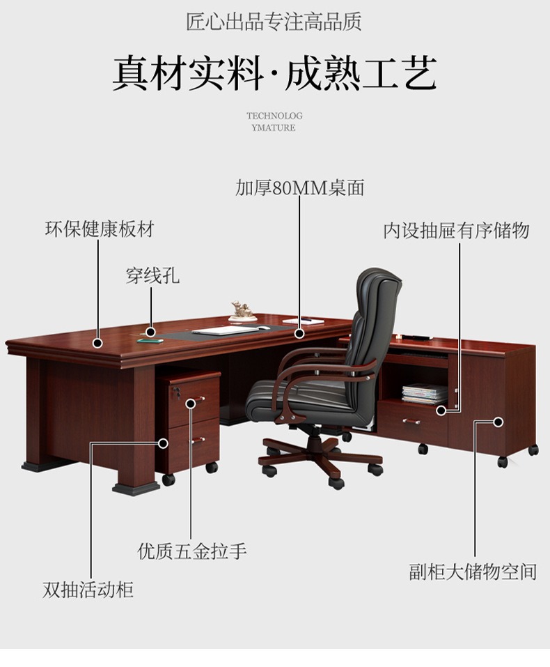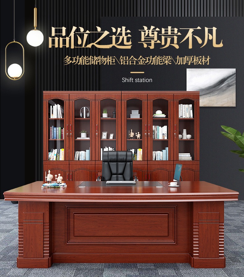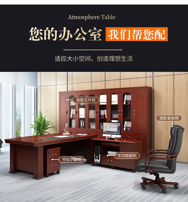 办公桌老板桌电脑桌大班台木皮董事长总裁桌总经理桌办公桌椅组合