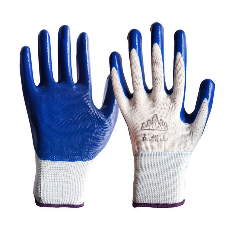 厂家批发劳保手套13针尼龙挂胶手套干活耐磨线皱丁腈乳胶浸胶手套
