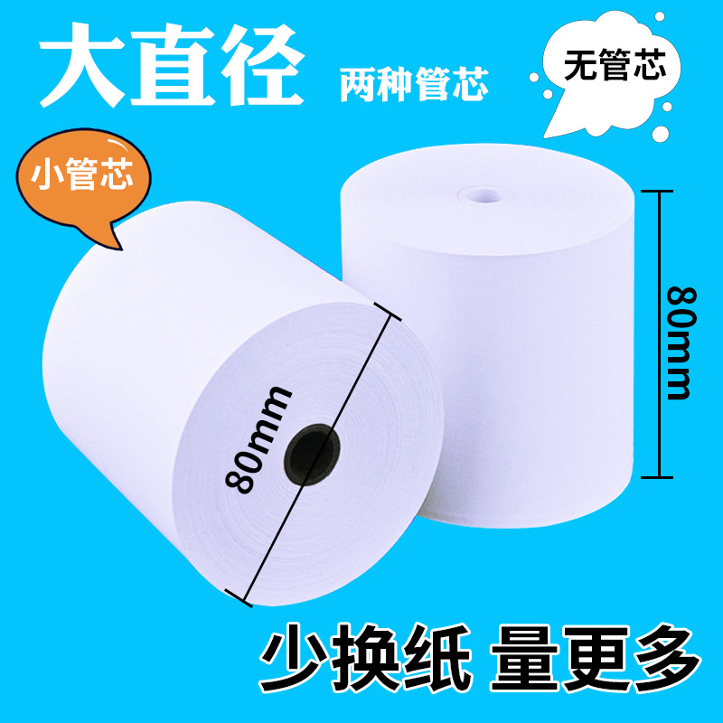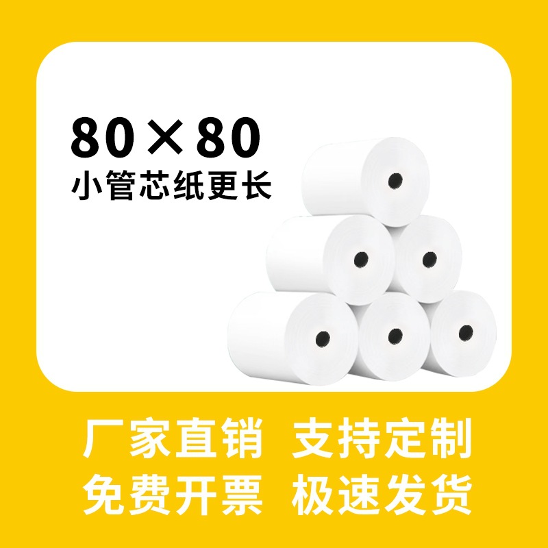 薄纸收银纸80x80小管芯80mm热敏收银纸无管芯餐饮酒店厨房小票