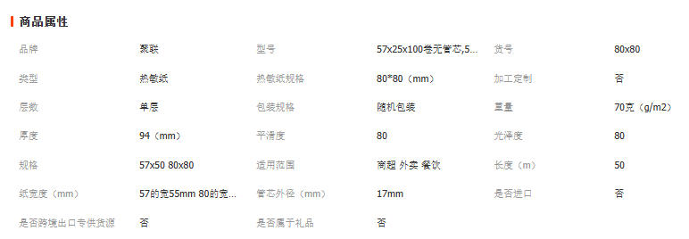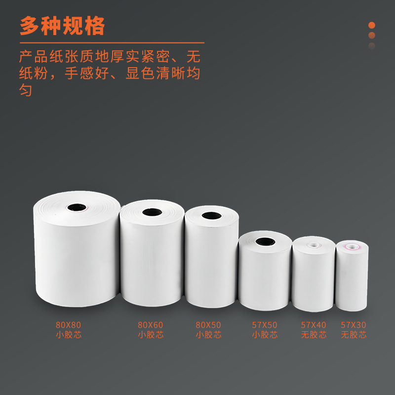 薄纸收银纸80x80小管芯80mm热敏收银纸无管芯餐饮酒店厨房小票
