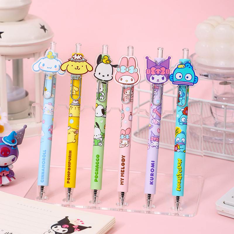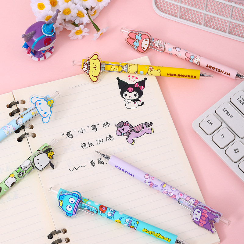 广博正版三丽鸥贴片按动中性笔可爱亚克力造型签字笔ST速干黑色