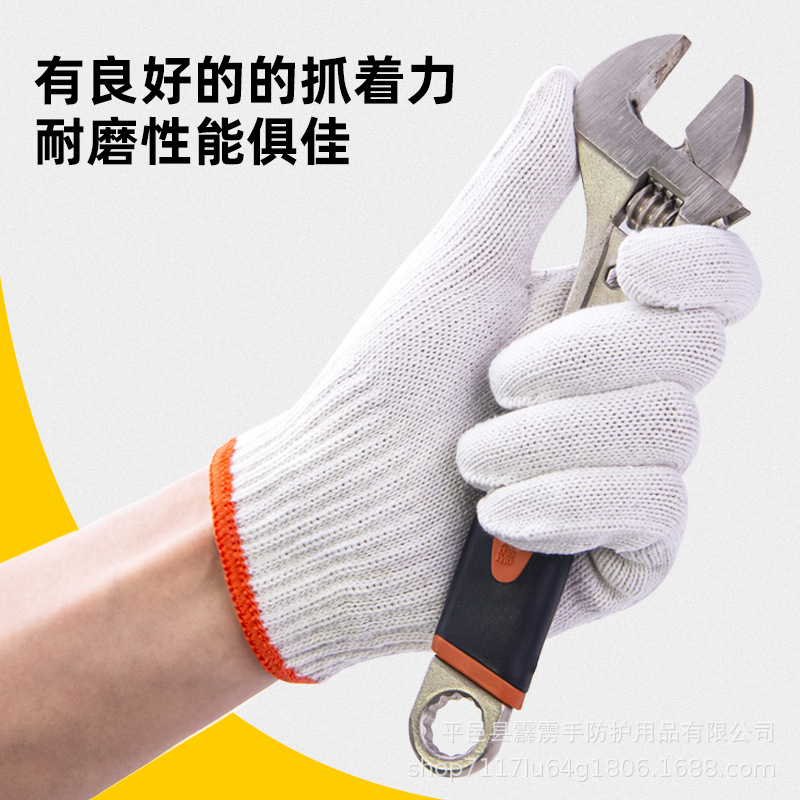 棉纱手套劳保耐磨工作棉线棉纱尼龙手套防护作业加厚手套工地干活