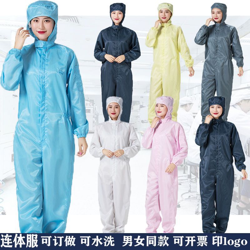 无尘服连体防静电护全身电子厂蓝白车间女食品厂口袋喷漆洁净服男