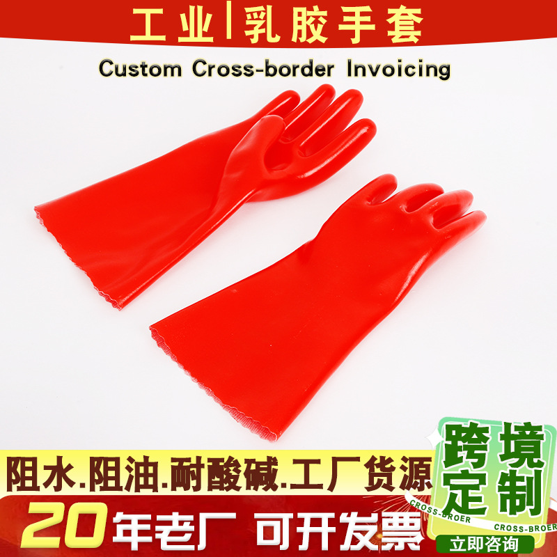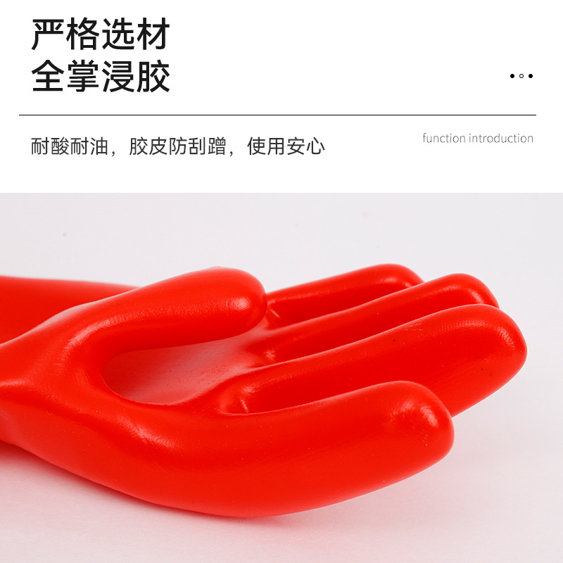 红耐油PVC耐油劳保防化学品防水加长化工石油外贸手套防护防渗透