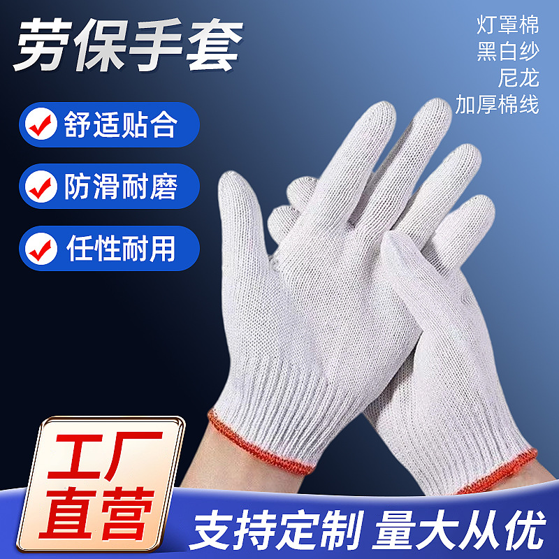 劳保手套白棉线手套耐脏修车工地加厚防滑透气耐磨手套线手套批发