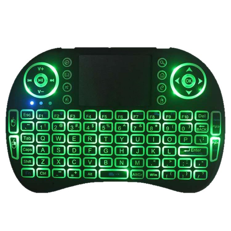 工厂直销i8飞鼠干电锂电三色背光 2.4G空中遥控无线迷你便携键盘