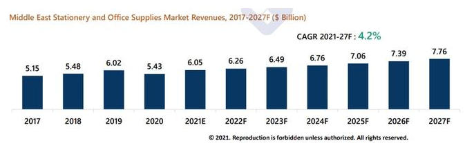 ResearchAndMarkets 发布的一份报告显示,到 2023 年,中东的办公文具用品和服务市场预计将增长 4% 以上。由于制造这些产品时对环境的关注日益增加,环保产品的受欢迎程度正在增加,环保办公文具的日益普及预计将推动市场增长。多功能书写工具的日益普及是推动市场增长的主要趋势。