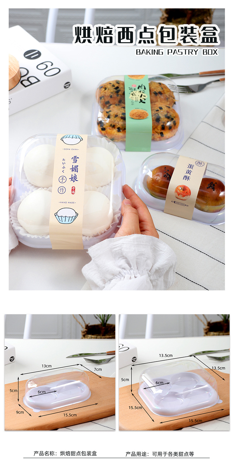 2粒装雪媚娘肉松小贝泡芙蛋黄酥包装盒4粒装甜品西点包装盒糕点盒