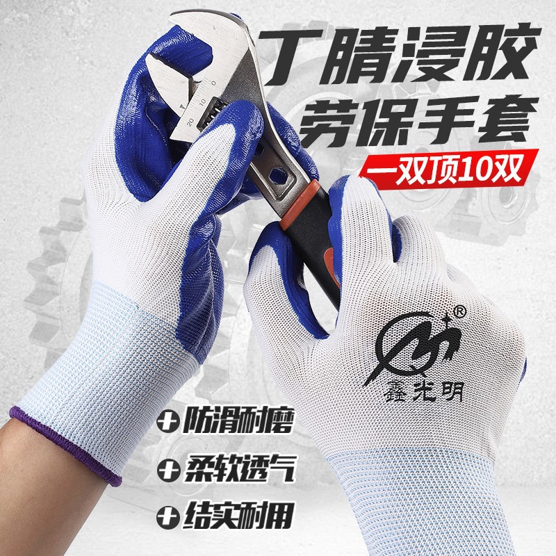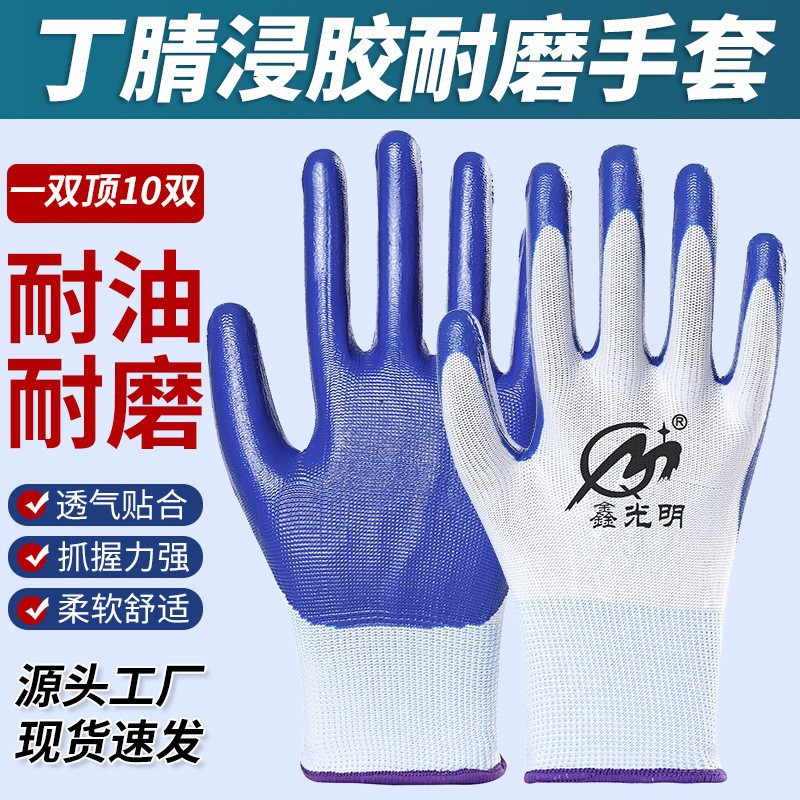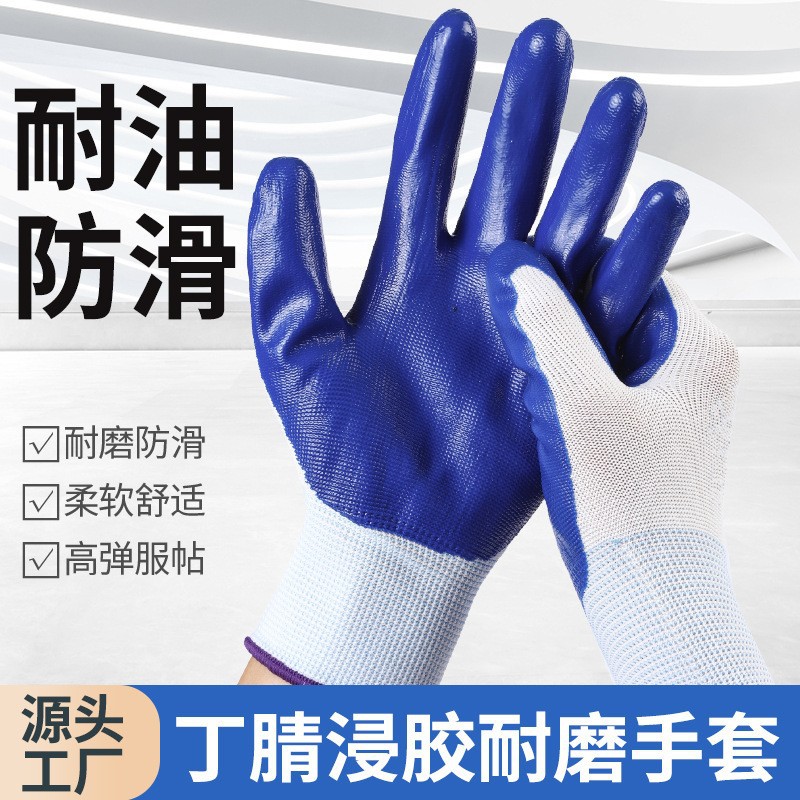 13针尼龙丁青手套耐磨防穿刺抗油吸汗透气多场景使用防护手套