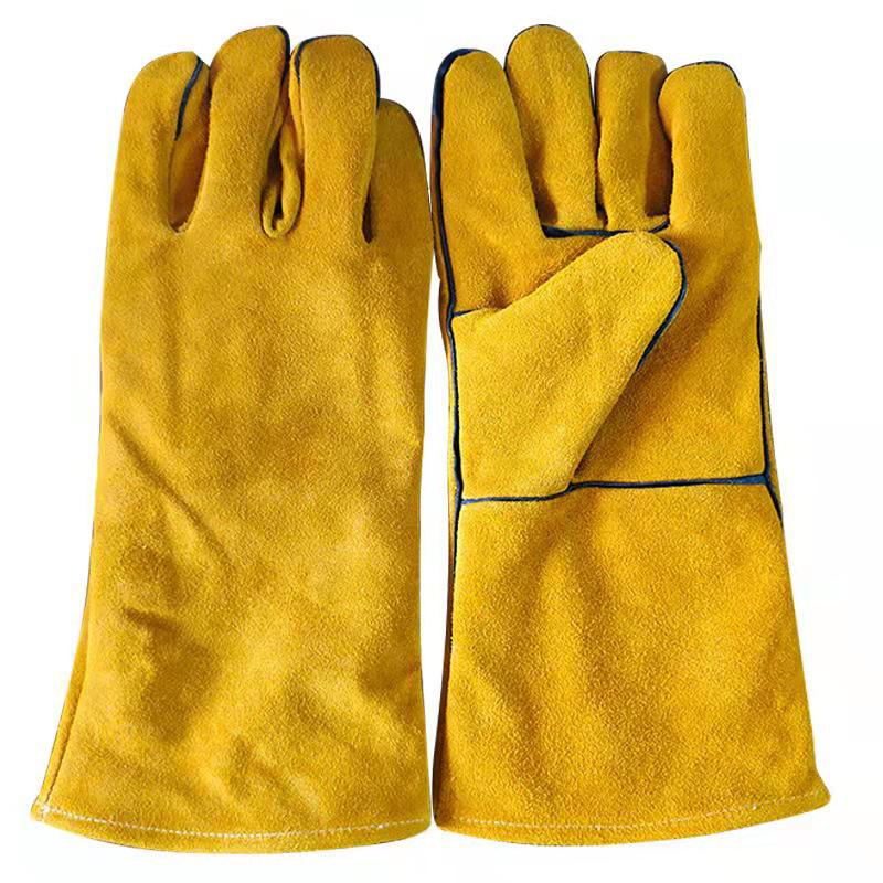 厂家批发隔热焊工手套牛皮电焊手套劳保焊工手套二层绒里电焊手套